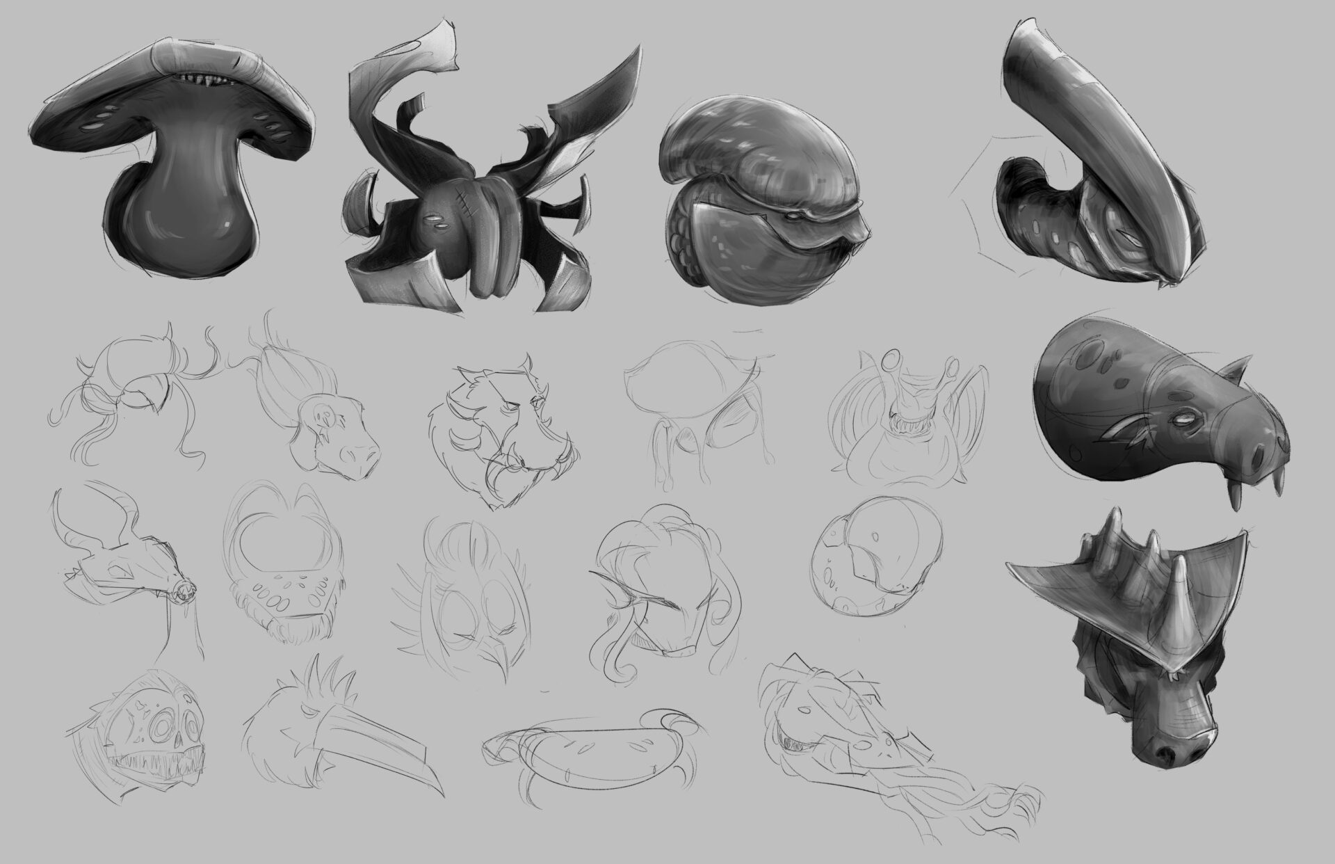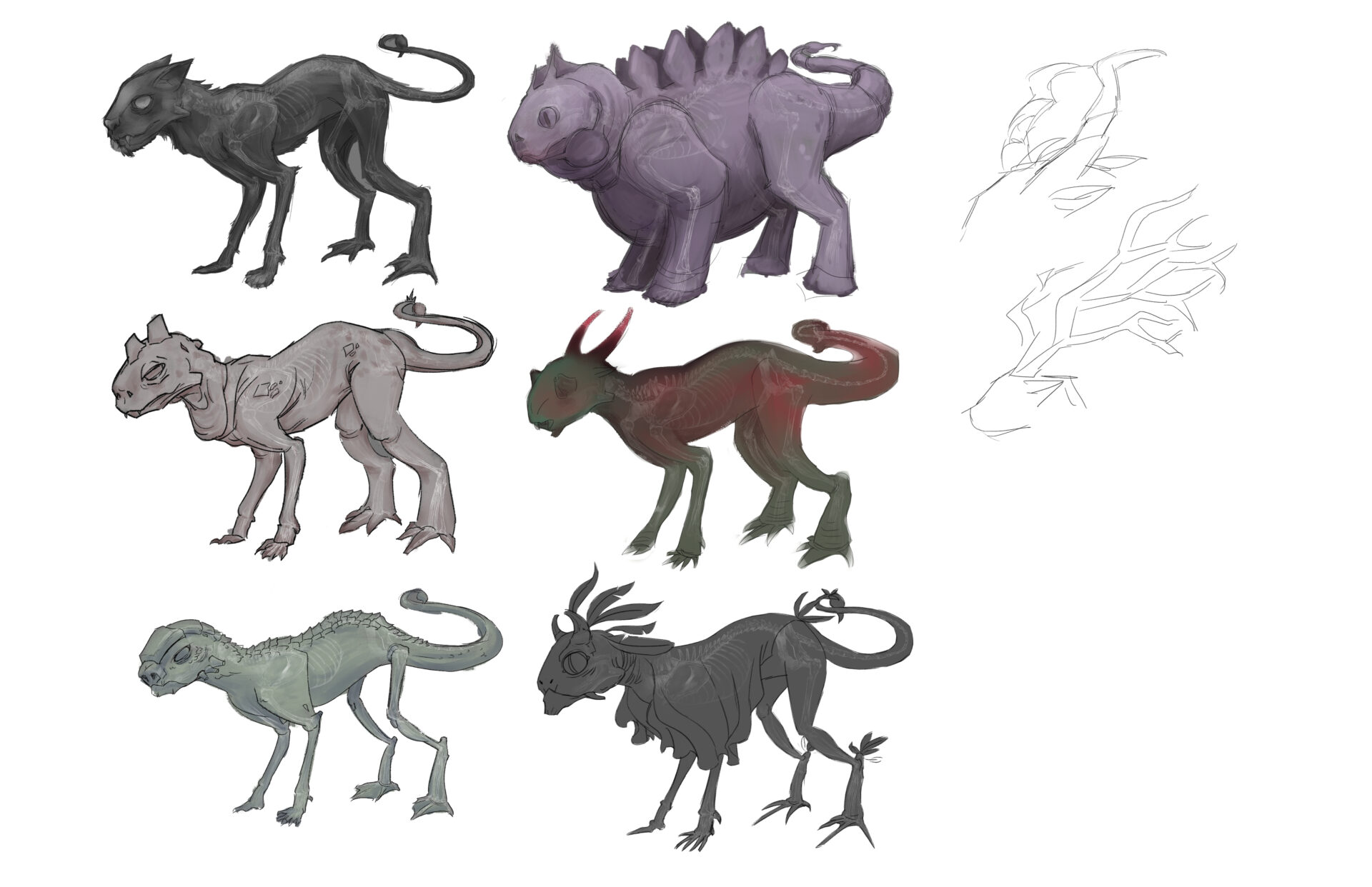 Exploring creature concept designs, starting from studying and putting together a skeleton base, then conceptualizing what kind of creature it could be. Clip Studio Paint – 2025.